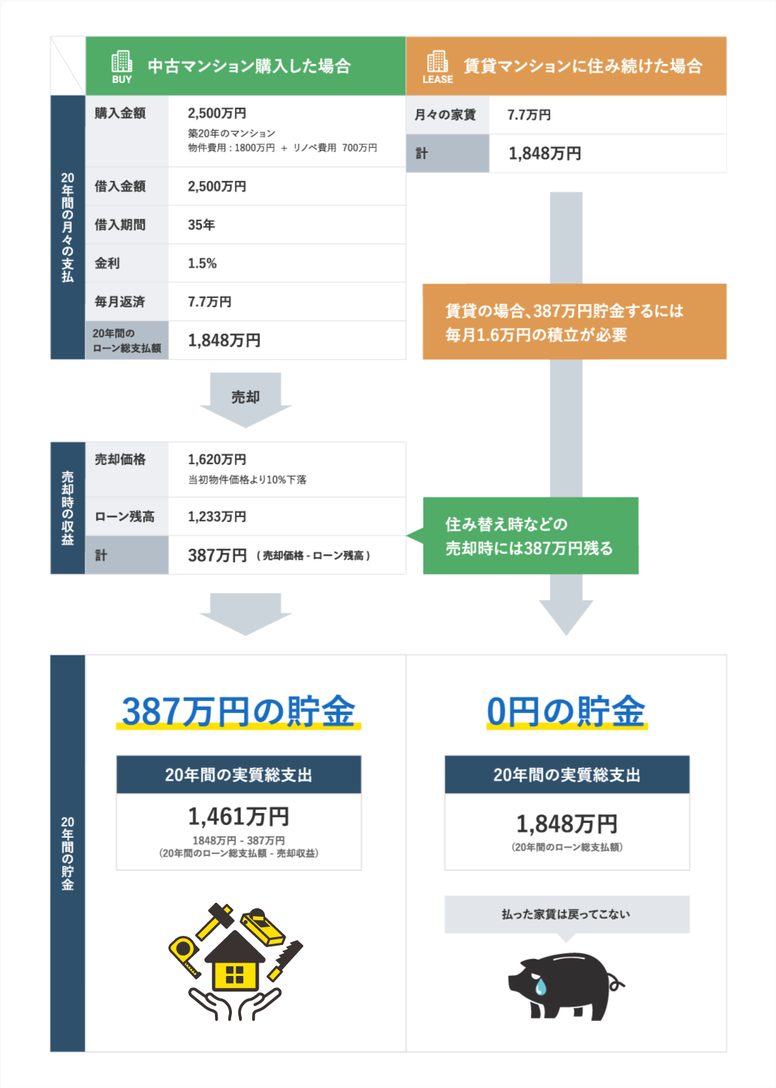 しかし、住宅を購入し住宅ローンを払った場合、積立保険のように、住宅を資産として積み立てることができます。